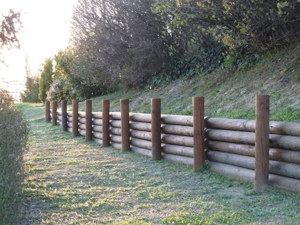 importanti opere di movimentazione livelli terreno con contenimenti in legno impregnato massiccio e belle recinzioni balaustre panoramiche in legno sulla strada comunale-