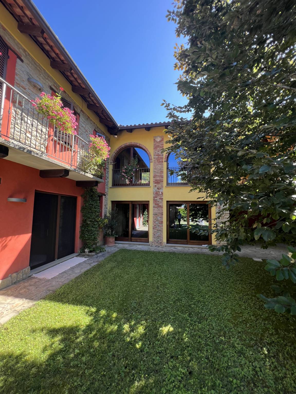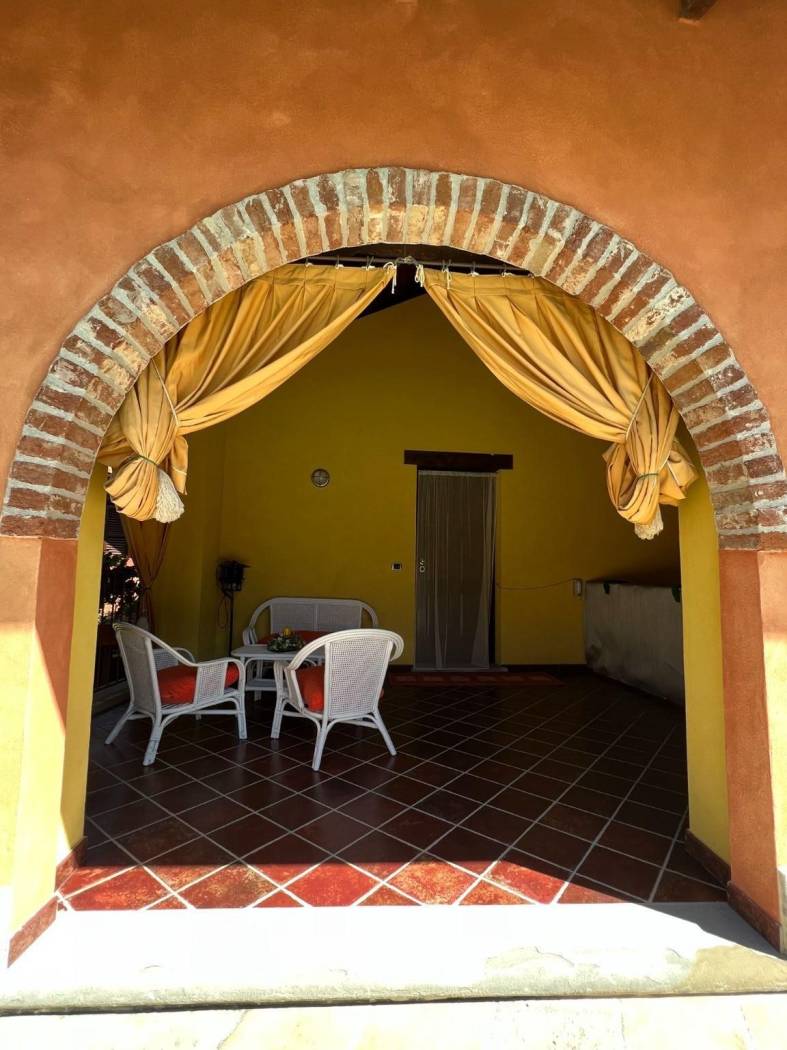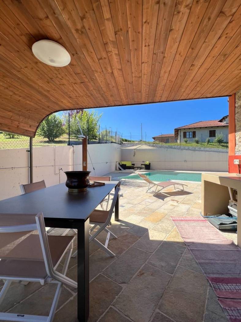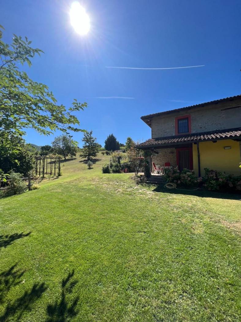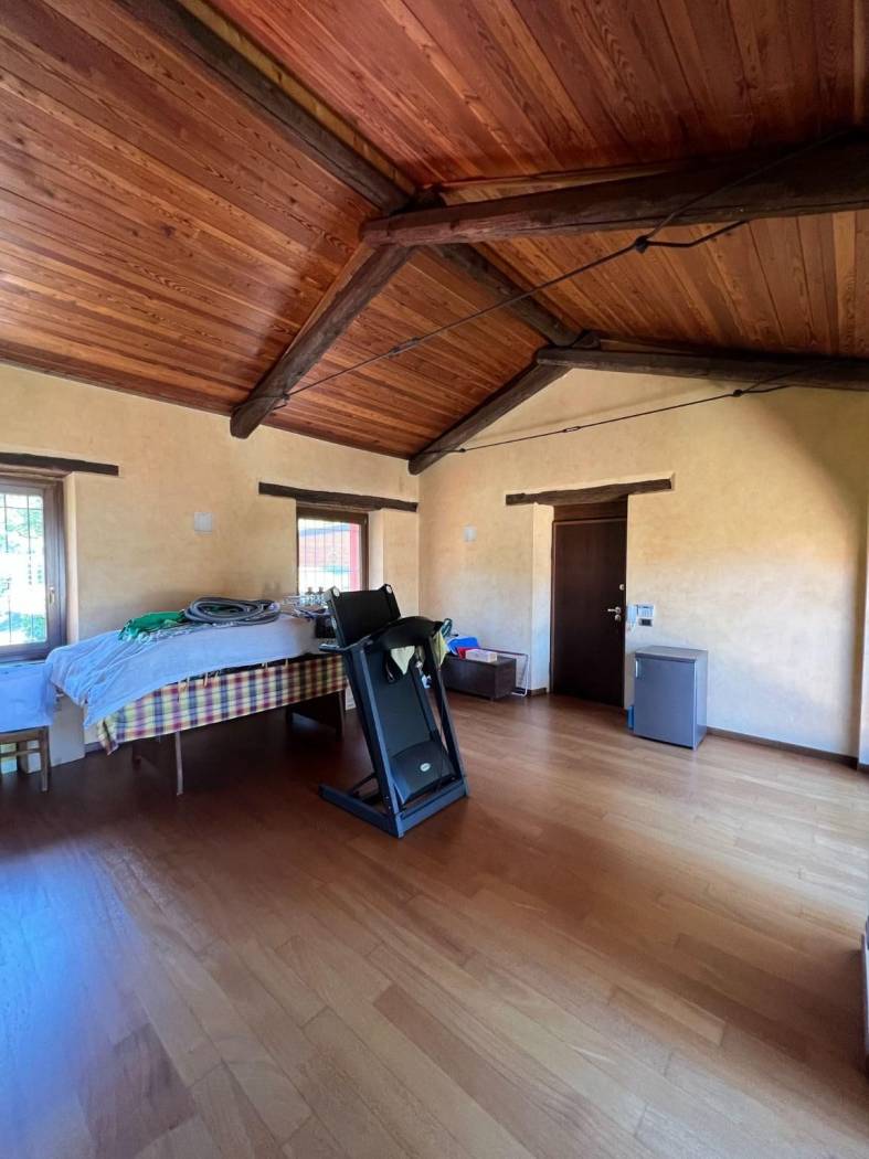 Il cuore pulsante della casa è rappresentato dall'ampio salone, caratterizzato da un centrale camino in pietra che crea un'atmosfera calda e accogliente nelle serate più fresche. Gli spazi sono arredati con mobili su misura che si integrano perfettamente con l'atmosfera rustica e lussuosa della cascina, porte in legno massiccio, pavimenti in parquet, rifiniture in pietra di Langa e mattoni vecchi danno all'immobile uno stile senza tempo.