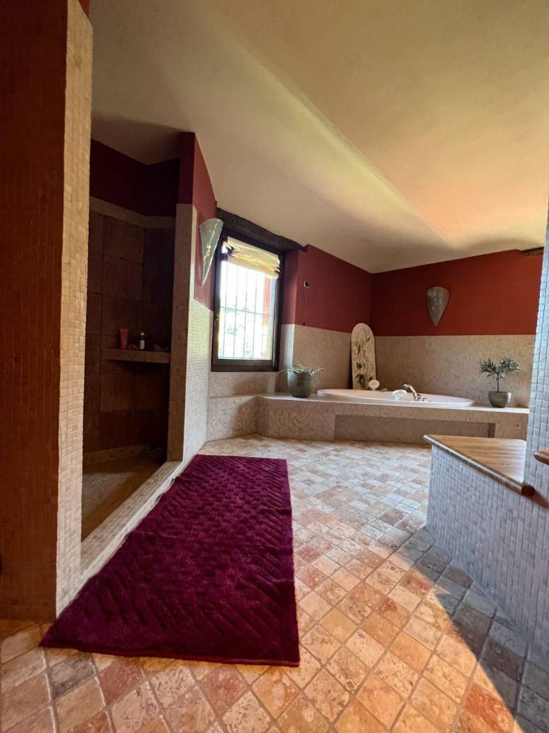 La residenza, elegantemente restaurata con attenzione per i dettagli, si compone di tre ampie camere da letto, di cui con splendida cabina armadio e ciascuna con il proprio bagno privato Finiture di alta pregio. Gli spazi sono pensati per offrire il massimo comfort e privacy. I bagni, arredati con elementi rustici e naturali, presentano docce spaziose e vasche da bagno lussuose.